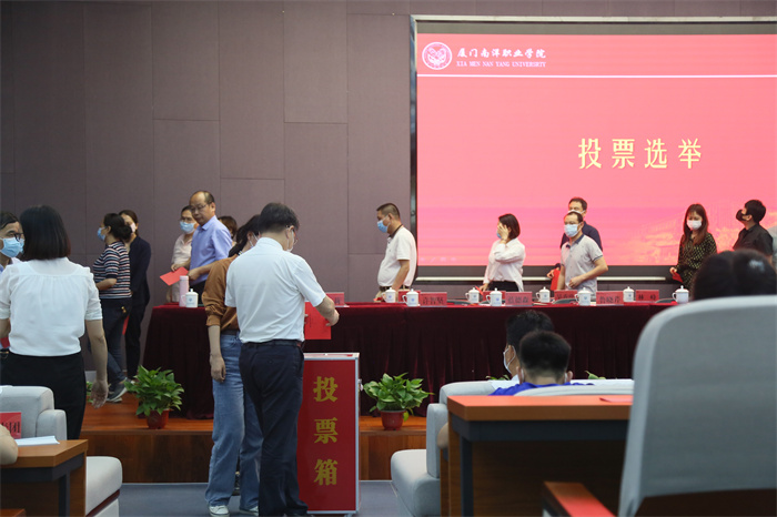 会上,校长助理李振杰作关于《厦门南洋职业学院章程修正案》情况说明的报告。与会人员审议、表决通过章程修正案、选举办法及总监票人、监票人、计票人、唱票人名单,并对候选人进行了充分酝酿。大会采用无记名投票的方式进行,最终选举出王晨、刘丽霞、黄磊康等3位同志为厦门南洋职业学院决策机构成员教职工代表。选举现场严谨规范、高效有序。