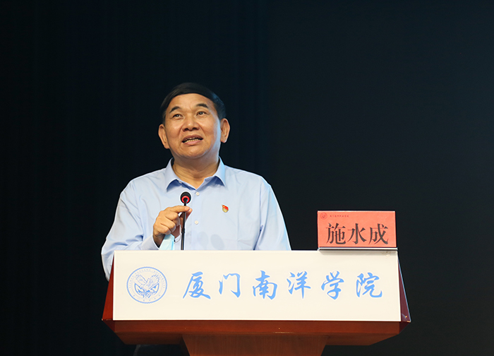 党委书记施水成代表校党委对学校原领导班子的辛苦付出表示感谢和肯定,并指出新一届领导班子的年轻化、专业化反映了全院师生的期望,希望新班子不负组织与群众嘱托和期望,团结协作,科学分工,带领南洋学院迈向新征程。
