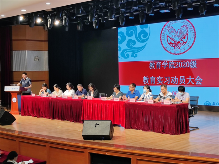 为进一步做好20级教育实习改革工作,推进此次教育实习工作顺利开展,6月1日下午,我校教育学院在活动中心小礼堂组织召开2020级教育实习动员大会。副校长许智坚出席会议,教务处相关负责人,学院负责人、专任教师、20级全体学生参加会议。
