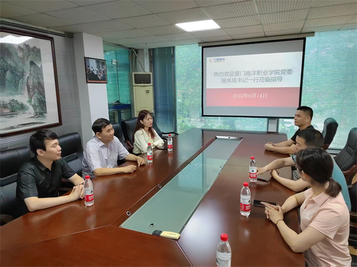 6月14日下午,我校党委书记施水成带队,党政办公室主任李蕊、教务处处长李建清一行3人前往位于泉州的福建省力天网络科技股份有限公司访企拓岗。