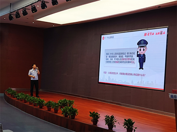 刘警官以生动诙谐的语言,从什么是毒品、毒品的分类、新型毒品的种类、毒品的危害、吸毒的原因、如何拒绝毒品等方面,结合大量真实案例,将禁毒知识讲清楚、讲透彻,使在场同学们深刻认识到毒品的危害。