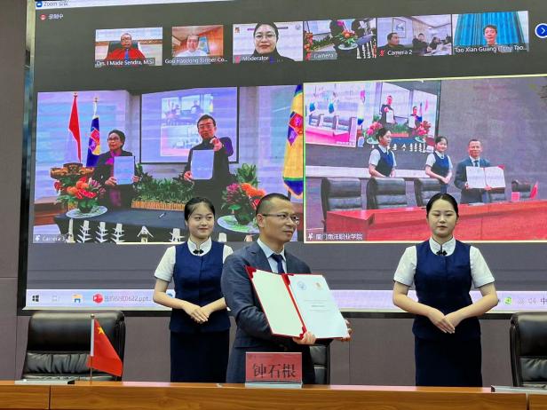 6月22日下午,我校外国语与旅游学院和巴厘岛国际理工学院在仙岳报告厅隆重举行专业合作云签约仪式。