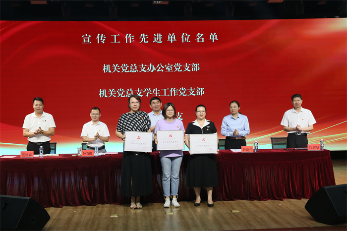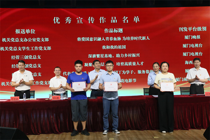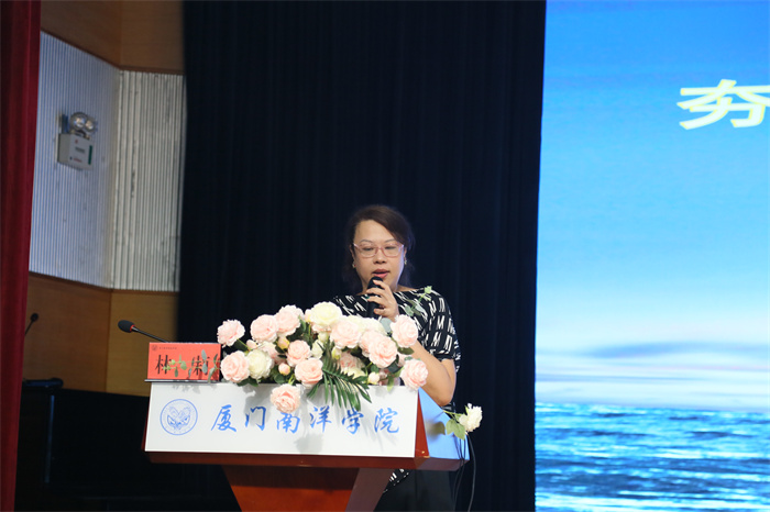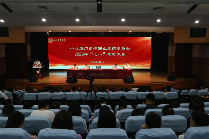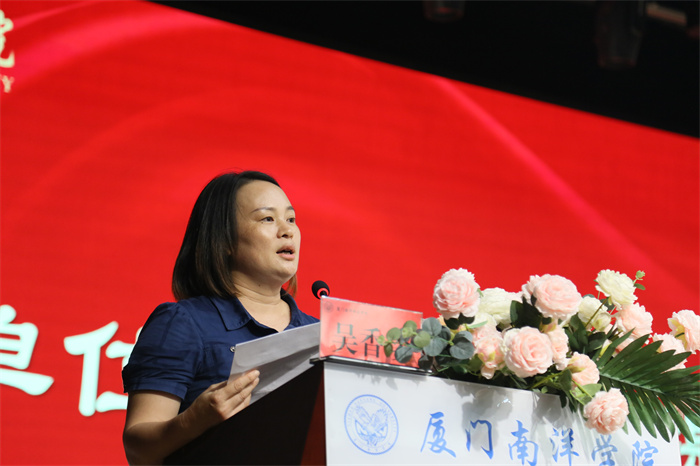 党委委员鲁晓芹宣读《中共厦门南洋职业学院委员会关于表彰优秀共产党员、优秀党务工作者和先进基层党组织的决定》、《中共厦门南洋职业学院委员会关于表彰宣传工作先进单位、先进工作者及宣传优秀作品的决定》。