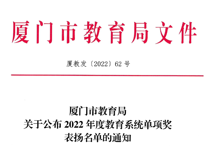 近日,市教育局发布了《2022年度教育系统单项奖表扬名单》,我校彭志勇、钟丹、吴小雅三位老师分别荣获市教育系统优秀思政工作奖、职业教育振兴奖、抗疫先进个人奖。