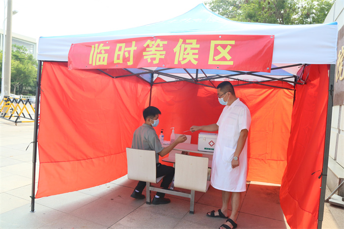 值班保卫人员询问学生情况,立即通知学校医护人员,向医疗保障组报告,并上报至学校疫情防控领导小组。在做好防护措施基础上,保卫人员迅速将异常学生带到校门口临时观察室观察。
