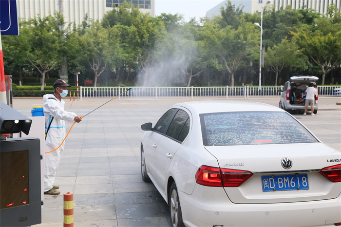 现场消毒组立即对校门口临时观察区、疑似涉疫学生活动区域进行应急消毒处理。