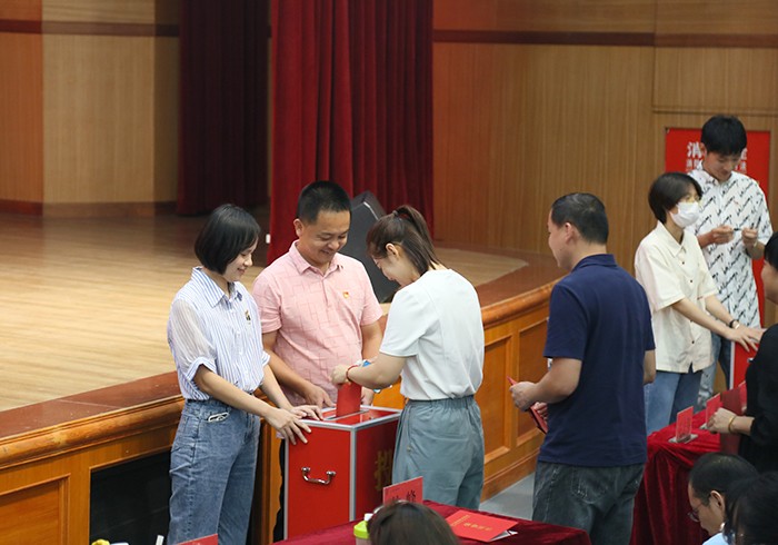 参会同志表决通过选举办法及总监票人、监票人和计票人名单。大会采取差额选举方式增补许智坚同志为党委委员。