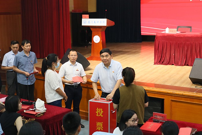 会上,党委书记施水成同志宣读中共厦门市委教育工作委员会《关于同意厦门南洋职业学院党委增补党委委员的批复》;党委组宣委员李振杰同志介绍候选人情况;党委纪检委员鲁晓芹同志宣读选举办法。
