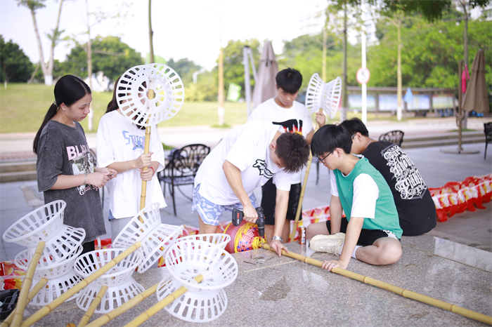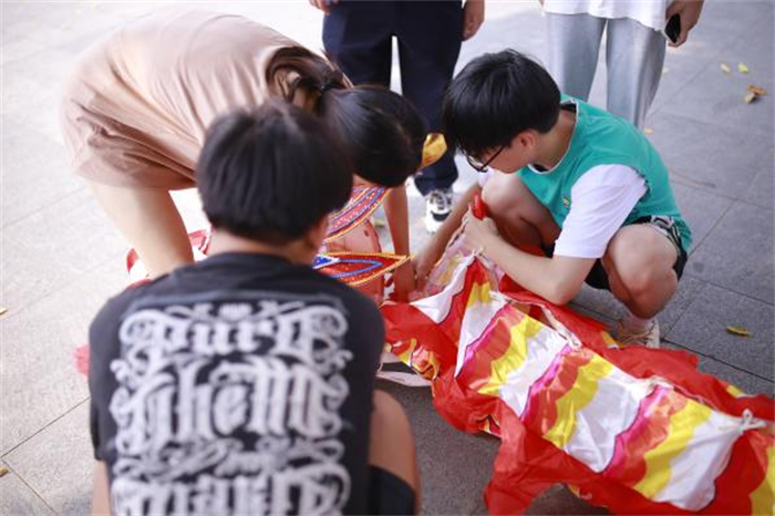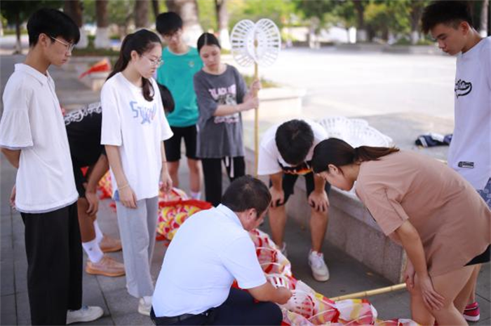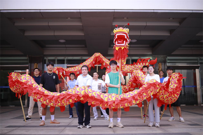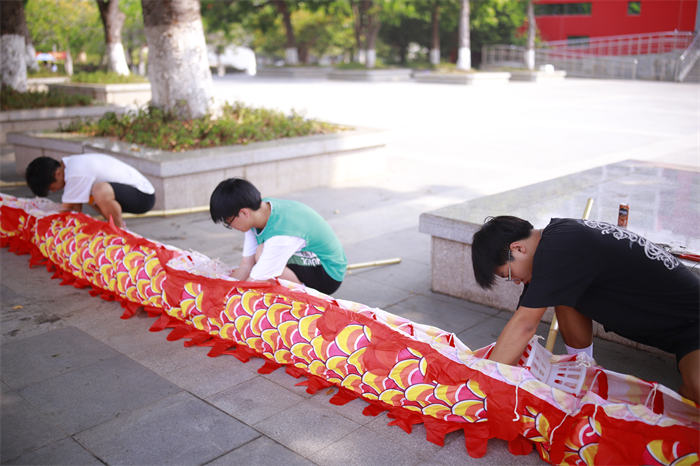 二级学院党总支书记和学生干部舞起龙灯