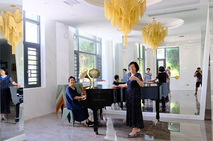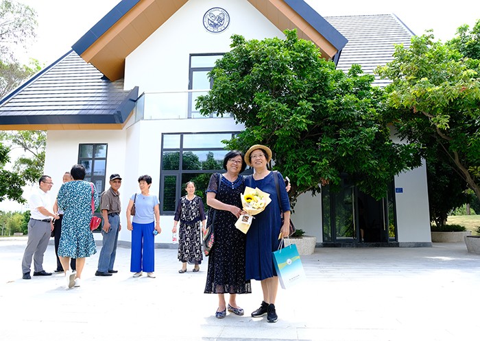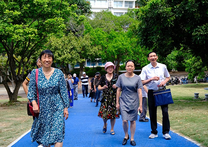 座谈会后,校领导陪同老教师们浏览了整个校园并一同共进午餐。