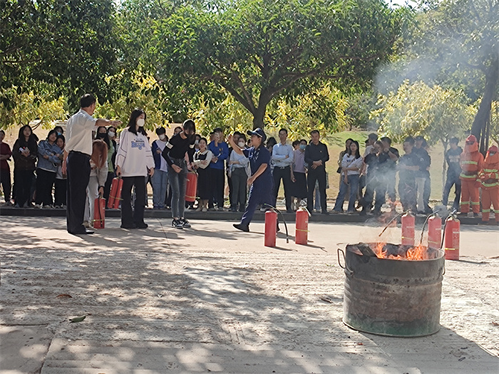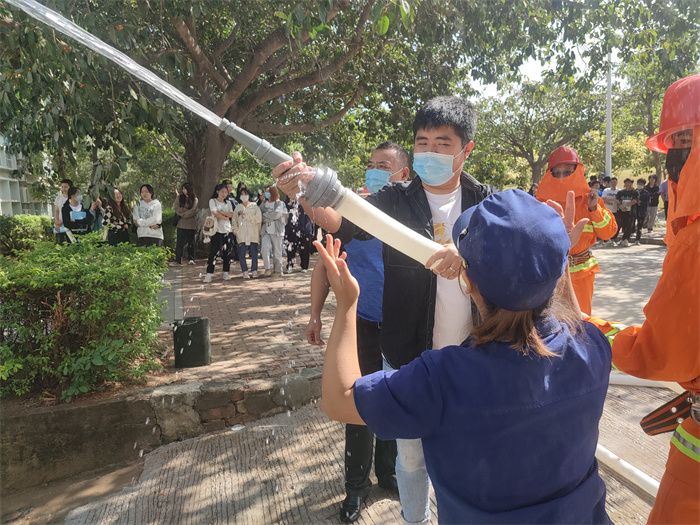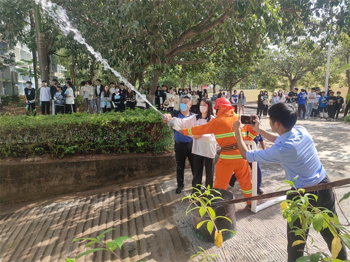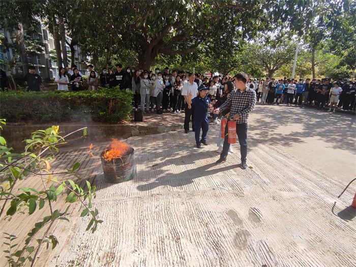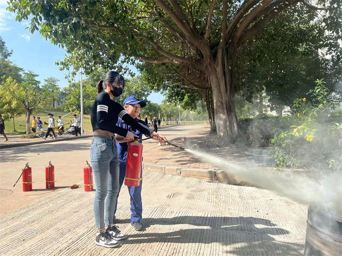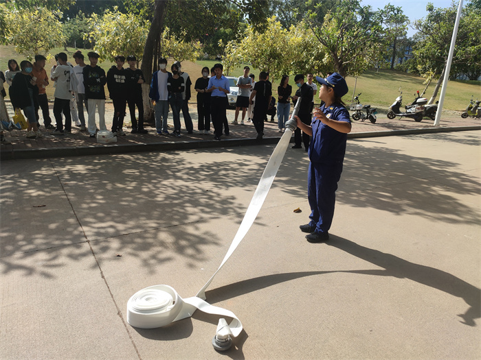 培训中,童玉馨从“防火”“灭火”“逃生”三个方面,用通俗易懂的语言向师生讲解如何预防校园火灾、如何查找身边火灾隐患、发生火灾时如何正确报警、如何自救逃生以及日常生活中安全用电、用火、用气等消防基础知识,并现场演示了灭火器、灭火毯及消火栓水带的使用方法,向师生们传授使用灭火器扑救火灾的操作要领。