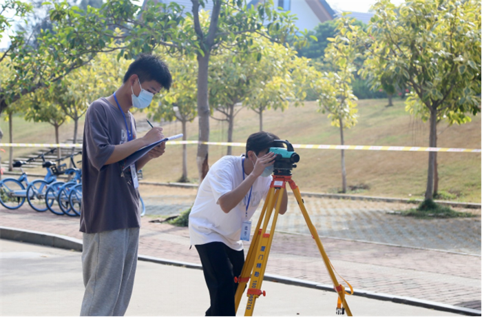 测绘比赛,较量着基本功的积累,没有人因为体能消耗而变得迟缓,也没有人因为气温升高而有所懈怠。经过现场踏勘后,选手们脑海中飞速进行着方案设计:如何选择最佳的对天和地面通视点位,如何确定观测线路,如何分配时间,如何保证要素采集的精度与完整性等。比赛过程中,GNSS观测信号的波动,数据的传输录入与核对纠错,以及其他各种偶发干扰项,都考验着选手的技能熟练程度以及临场应变能力。