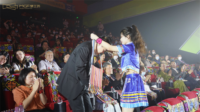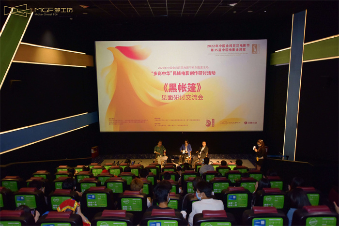 2022年中国金鸡百花电影节暨第35届中国电影金鸡奖的系列配套活动“多彩中华”民族电影展映11月10日在厦门梦工坊巨幕影城举行,我校电影学院的戏剧表演、编导、摄影摄像、音乐表演等专业40名师生参与启动仪式的民族服装展示及礼仪接待等工作,并参加电影《黑帐篷》的专场观影交流会。
