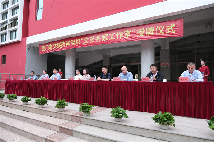 党委书记施水成在致辞中表示,厦门市文联“文艺名家工作室”的授牌,不仅有助于进一步提升南洋学子文化艺术修养,还将进一步推动学校学科专业建设,培养与社会顺畅对接的艺术人才,服务厦门市文化艺术事业发展。他希望厦门市文联和文艺名家们将更多体现时代风貌、反映闽南精神的优秀文艺作品带入我校。