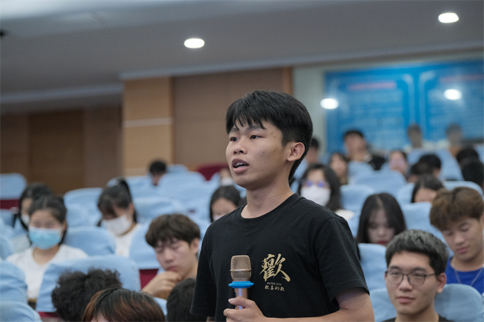 11月21日晚,董事长、校长鲁加升在活动中心礼堂为我校2022年团学干部培训班授课,校团委书记章卿、学工干部、各二级学院辅导员、团学干部培训班成员参加,校长助理蓝德森主持。