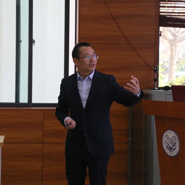 执行校长钟石根详细介绍了学校发展历程、办学定位、未来建设规划,以及人才培养、服务地方经济社会发展等内容。他指出,南洋学院时刻牢记以学生发展为中心,培养学生为己任,特色办学,全面育人。为更好的服务社会经济发展,学校以就业为导向,注重发掘学生潜力,培养学生专业实践能力。并以旅游管理、家政等专业为例进行说明。