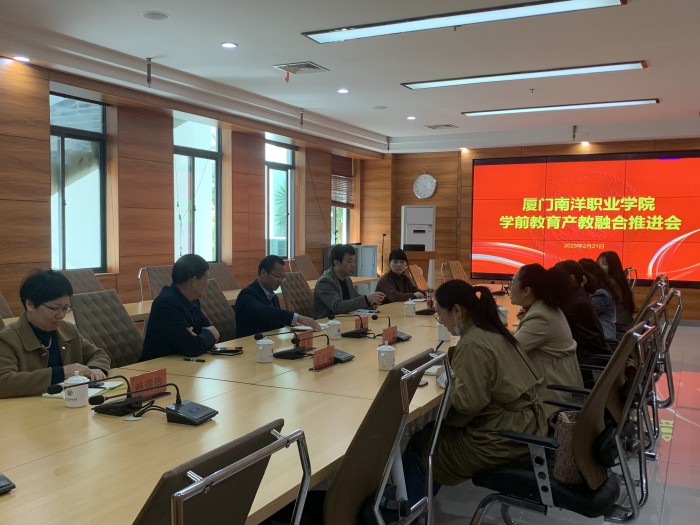2月21日上午,我校教育学院学前教育产教融合推进会在第一会议室召开,会议讨论了如何深化园校合作,加快推进内涵建设和转型发展,助推产教融合,强化人才培训与市场需求的有效对接。校领导钟石根、 许智坚及有关部门负责人、园方代表参加会议。