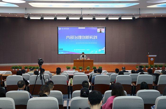 鲁加升教授以《强化内部治理能力建设 激活高质量发展动力源——厦门南洋职业学院对优化内部治理体系的探索》为题,从“坚持改革创新,探索现代化治理体系”“强化创新思维、提升现代化治理能力”“创新培养模式,构建人才培养治理体系”“紧抓新时代机遇、走现代化内涵发展之路”四方面分享了厦门南洋职业学院23年办学历程中在构建治理体系、提升治理效能方面所做的探索,系统介绍了制度体系建设、组织管理结构、内部管理改革、目标绩效管理、多元评价机制、新教职工培训模式等学校内部治理机制以及“三元制”、勤工助学、产业学院建设等人才培养治理体系。他认为职业院校治理能力提升需要根据新形势、新任务、新要求,不断调整理念思维、载体抓手、方式方法,重点厘清党的领导和院校治理、学校治理和院系治理、内部治理和外部治理三对关系,把握高职院校的治理内涵和治理要求。