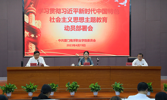 施水成指出深入开展学习贯彻习近平新时代中国特色社会主义思想主题教育,是当前一项重大政治任务,也是今年学校党委工作的重中之重。对此,他提出四点意见。一要深刻领会开展主题教育的重大意义;二要牢牢把握主题教育的目标要求;三要统筹推进主题教育的各项工作;四要切实加强对主题教育的组织领导。他表示,要把开展主题教育与创建生态文明校园相结合,把主题教育转化为推动学校改革发展的强大动力,不断书写学校内涵式高质量发展新篇章,为实现社会主义现代化贡献南洋力量。
