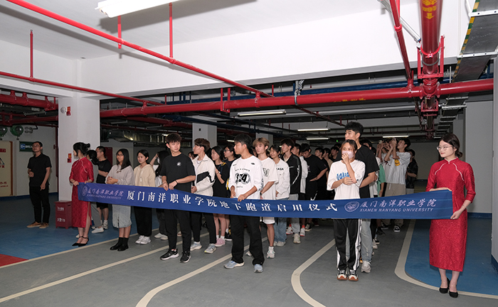 此次,学校董事会在运动跑道的材料选择、颜值设计、跑道配套等多方面进行了深入研究,斥资8000余万元,融合健康的理念,设计出全国民办高校首条地下跑道,让运动不再受到时间和天气的约束,解决了师生夏天和阴雨天上体育课和锻炼的问题,想动就动,随时开启健康生活。