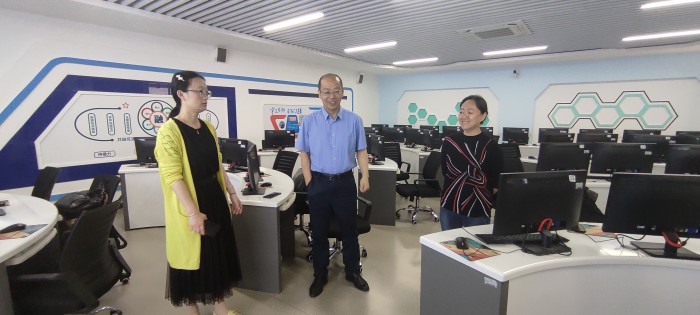 李校助一行实地参观了广州城建职业学院人文学院实训室并与副院长王婧等人进行座谈。在了解了人文学院理实一体化的新媒体专业群实训室功能后,双方就如何更好的让融媒体中心建设能够充分满足相关专业教、学、产、训一体化的教学需要以及更好地发挥学生主观能动性,深化政校企合作等内容进行探讨。