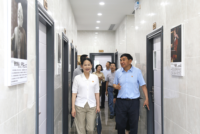 座谈前,学校党委委员带领市委主题教育第八巡回指导组一行参观了我校学生作品展厅、实训楼、琴房等地。