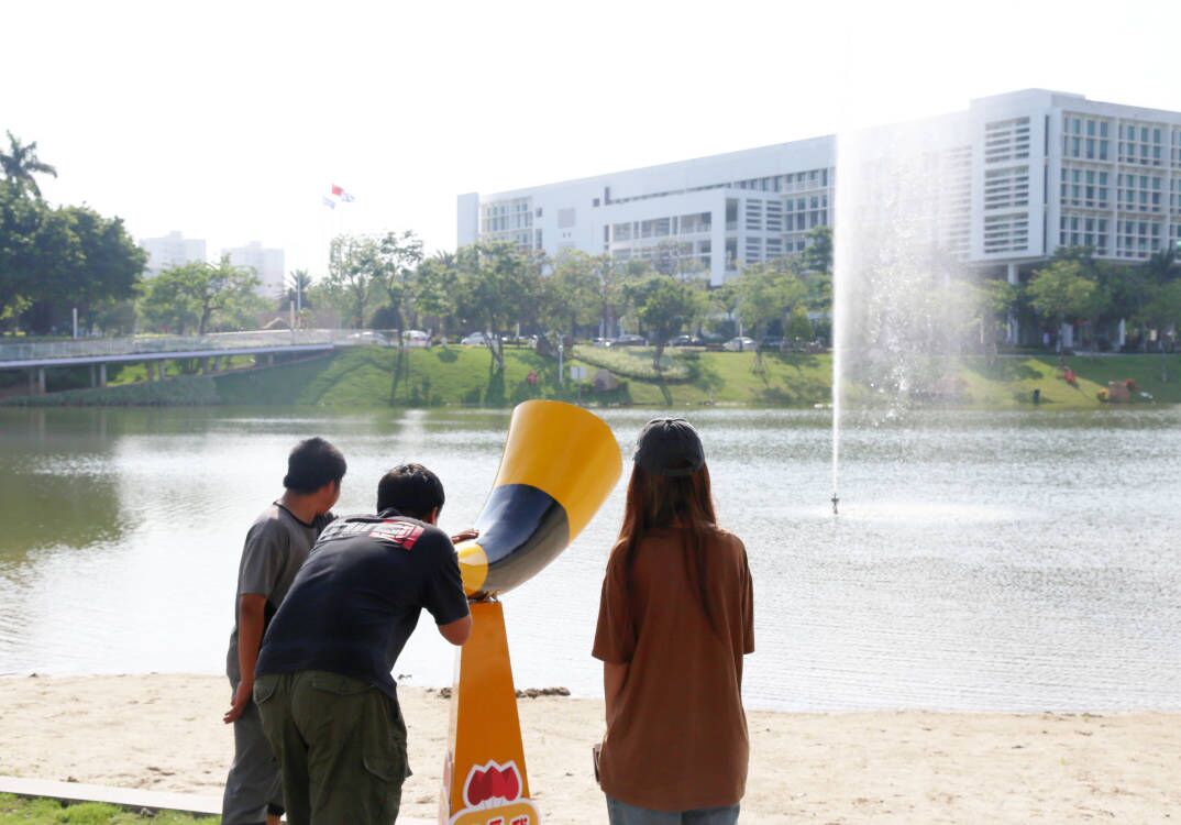 据了解,“网红喊泉”是通过人发声的高低、时间的长短来决定喷泉的喷射高度和持续时间的长短。一喊,喷泉跃跃欲动;再喊,喷泉就跳起来。声音足够大的话,喷泉就能直冲云霄,任由散落的水珠在空中舞蹈。厦门南洋学院是国内第一所将“网红喊泉”引入校园的高校。