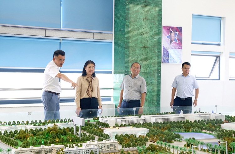 会前,徐州市委统战部副部长、工商联党组书记秦玉锦一行参观了我校环湖栈道、学生街、实训楼等地。