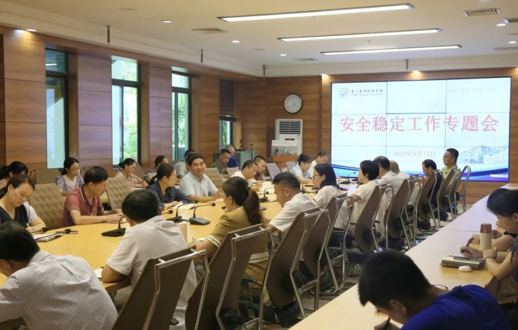 9月18日,我校召开安全稳定工作专题会,传达上级会议精神,分析形势、梳理问题,明确责任、部署工作,确保安全稳定工作落实到位。校领导施水成、鲁晓芹、钟石根、许智坚、蓝德森以及学校安全稳定领导小组全体成员参加会议。