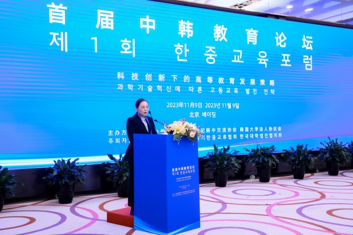 2023年11月9日,首届中韩教育论坛在北京成功举办。我校执行董事长鲁晓芹受邀出席论坛并作交流发言。