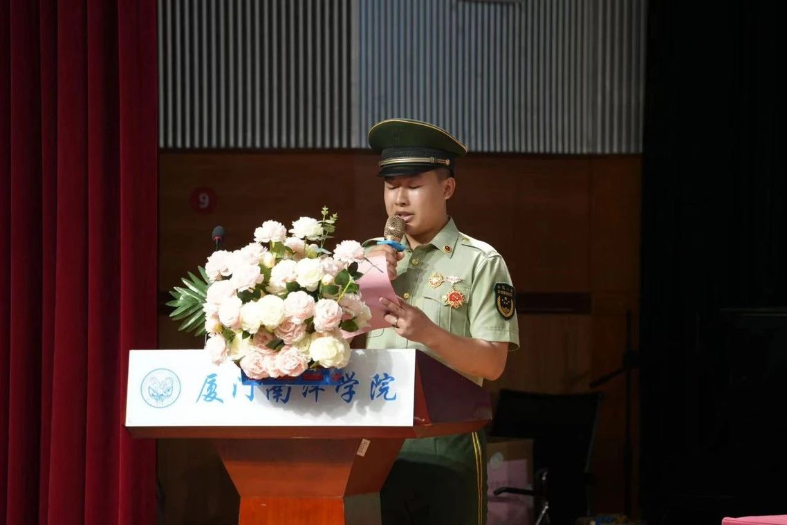 6月14日,我校2023-2024学年退役军人先锋队工作总结暨表彰大会在活动中心礼堂隆重举行。翔安区退役军人服务中心副主任张凡贵,翔安区“一鹭先锋”退役军人志愿服务队副队长任开强出席会议。我校领导钟石根、蓝德森,各职能处室负责人,退役军人先锋队全体成员及各二级学院退役复学学生参加活动。