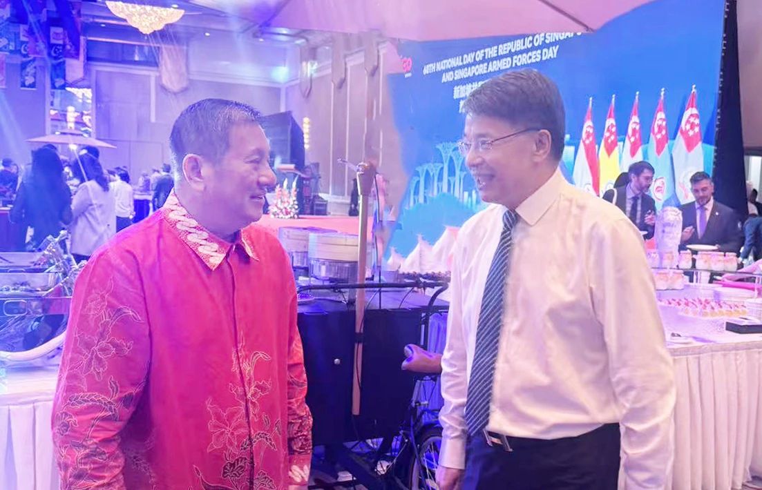 2025年是新加坡共和国建国60周年,也是中国与新加坡建交35周年,8月1日,新加坡驻华使馆在北京中国大饭店举办新加坡建国60周年暨武装部队军人节招待会。外交部副部长孙卫东,新加坡驻华大使陈海泉及沈秀英夫人与各国驻华使节、各界人士齐聚一堂,共庆佳节。我校创办人、南洋教育投资董事长鲁加升教授受邀出席盛会。