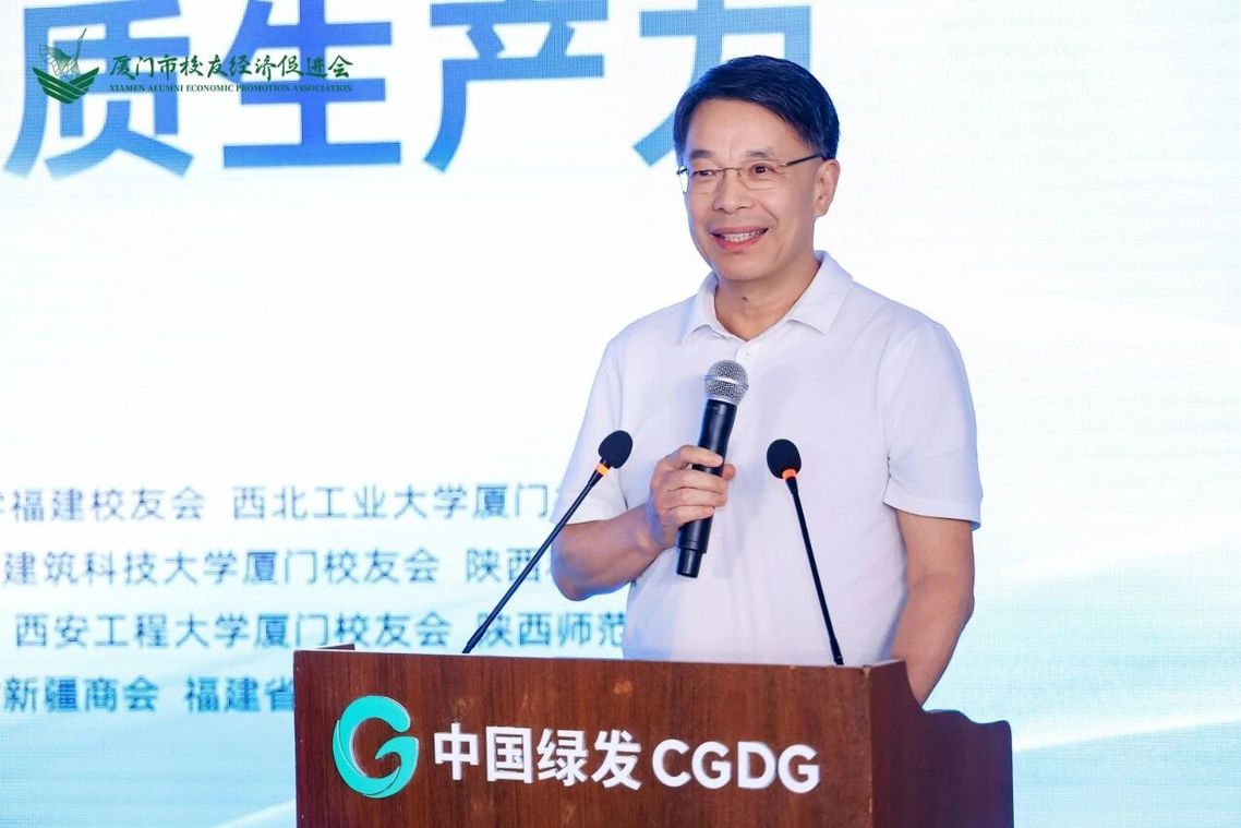 陕西高校联盟福建理事长、厦门老字号协会荣誉会长、西北农林科技大学厦门校友会荣誉会长杨毅则以《引智聚力:以西部科技人才驱动厦门新质生产力澎湃动能》分享观点,阐述如何以校友为纽带,让西部科技人才成为厦门新质生产力发展的 “强心剂”。