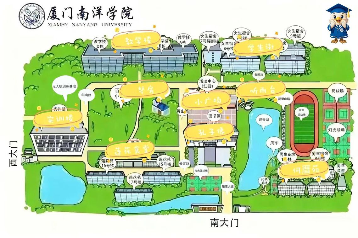 25周年校庆IP“阿南”的设计灵感以雄鹰为原型,身着蓝色学位服与方帽,胸前校徽象征荣誉与传承。圆润的大眼睛与灿烂笑容,展现青春与活力,双手贴脸的动作传递亲切与喜悦。整体设计简洁明快、亲和力强,IP形象保留了“阿南”本体的鹰爪,让南洋雄鹰的元素更加直观既寓意学子志存高远、勇敢逐梦,也彰显学校25年办学历程的辉煌与温暖。