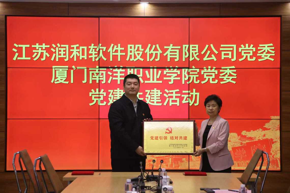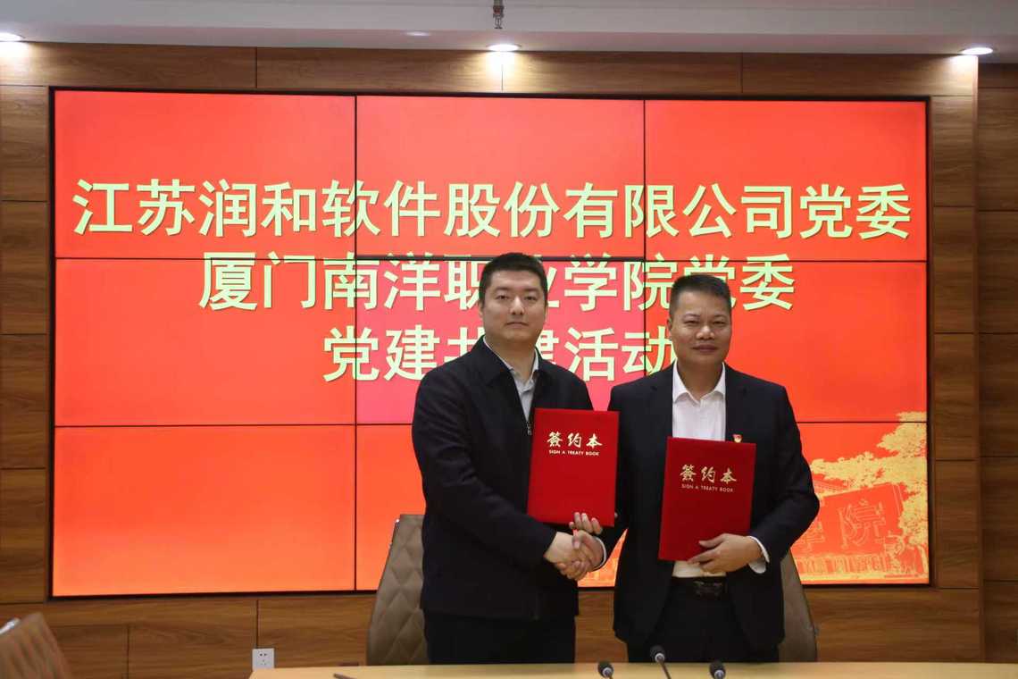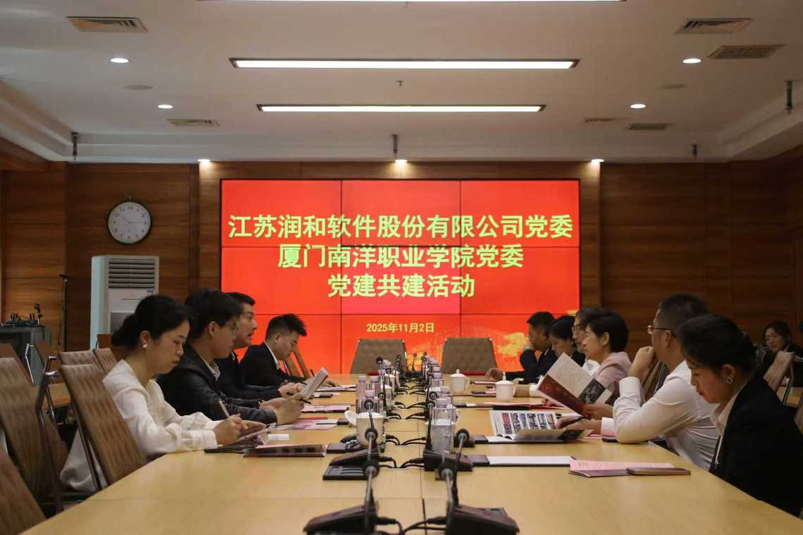 为强化党建引领、深化校企合作,11月2日上午,厦门南洋职业学院党委与江苏润和软件股份有限公司党委党建共建活动在我校举行。江苏润和软件股份有限公司党委副书记、纪委书记、工会主席韩波,工会常务副主席蔡良,润开鸿数字科技有限公司教育业务部门总经理刘太俊、闽赣大区经理訾红胜,华为(厦门)开发者创新应用中心教育行业生态经理李瑞;厦门南洋职业学院党委书记陈宏瑶,党委副书记、副校长蓝德森,党委青年委员、校长助理侯红科,相关部门负责人、师生代表参会。本次活动由侯红科主持。