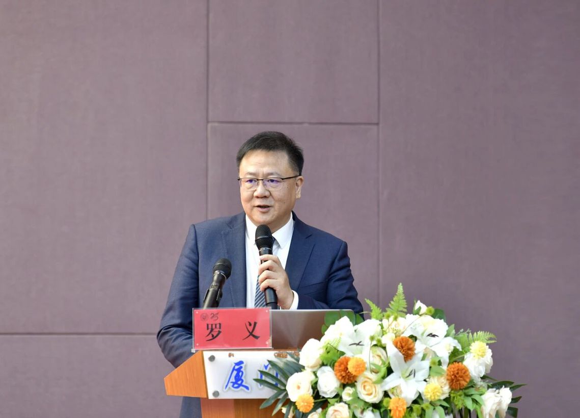 西工大深圳校友会会长罗义致辞,表达了对厦门校友会第八届会长鲁加升的敬佩,认为其用实际行动践行了西工大的校训和校风,并提出希望深圳与厦门校友会加强交流互动,最后祝愿厦门南洋学院和各地校友会发展更好。