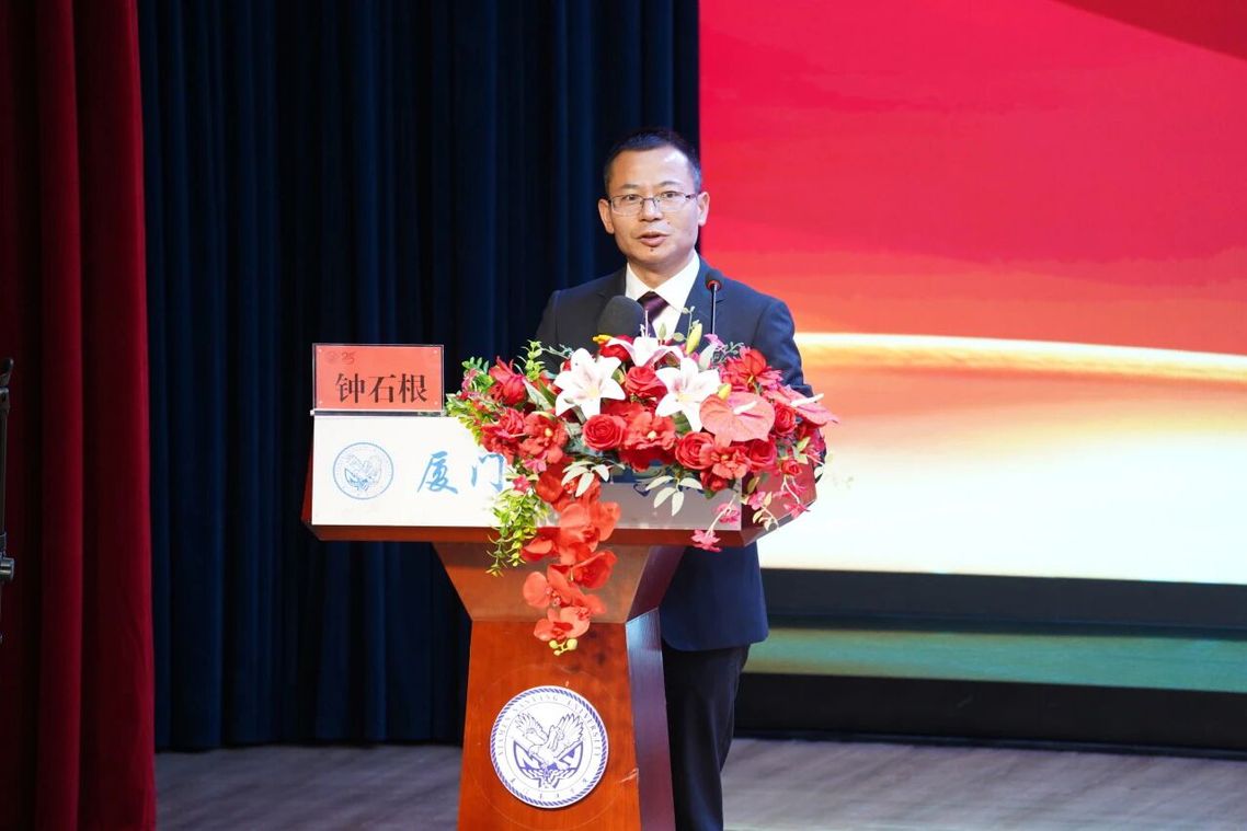 执行校长钟石根首先致辞。他回顾了学校的办学成果,并对校友会的贡献表示感谢,强调了校友会在促进学校与校友之间联系的重要作用,并对未来的校友会工作提出了期望。
