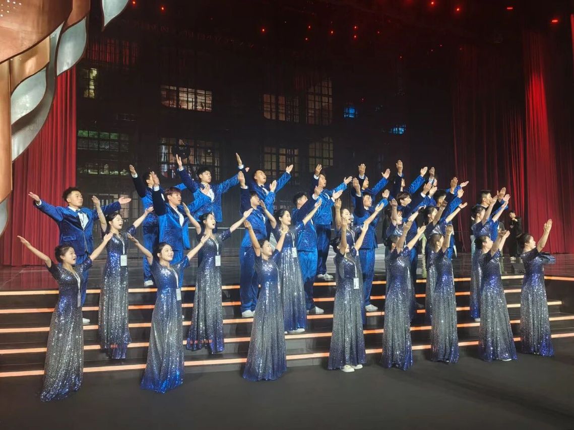 我校电影学院、退役军人先锋队共100余名师生参与了闭幕式节目演出及合唱,包括《金鸡组曲》《获奖之作》(陈楚生演唱)、《追寻》《我爱你中国》(张杰演唱)及《星辰大海》等节目。