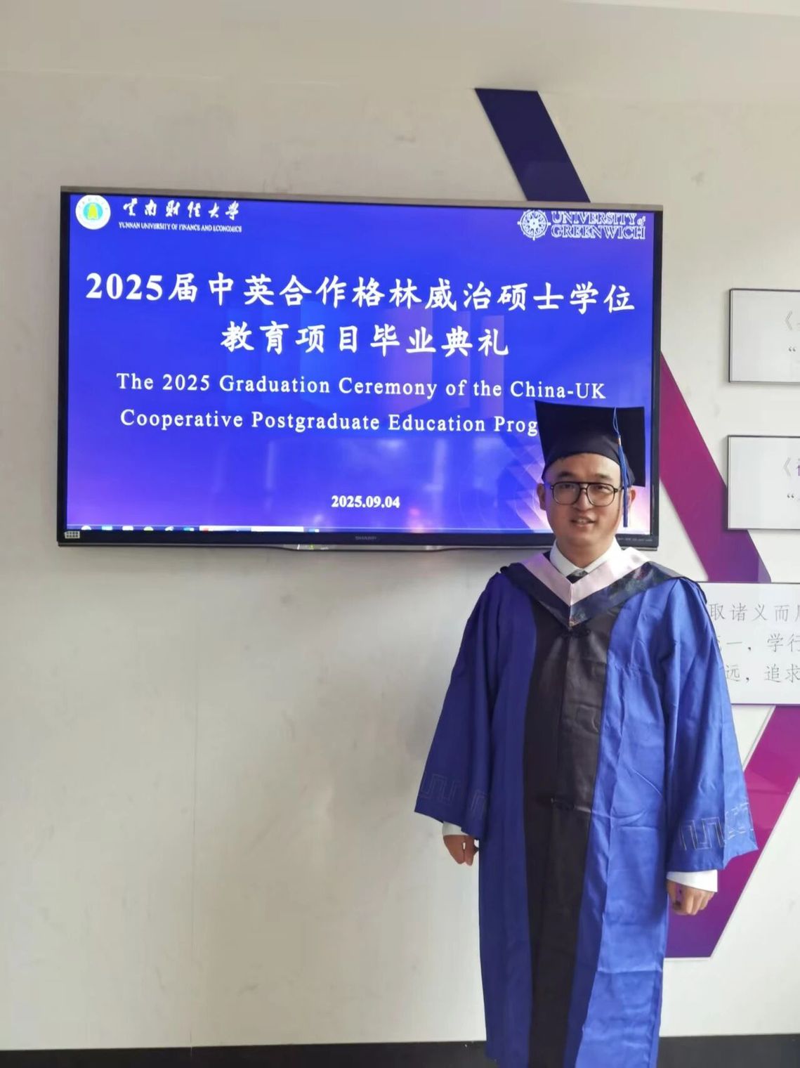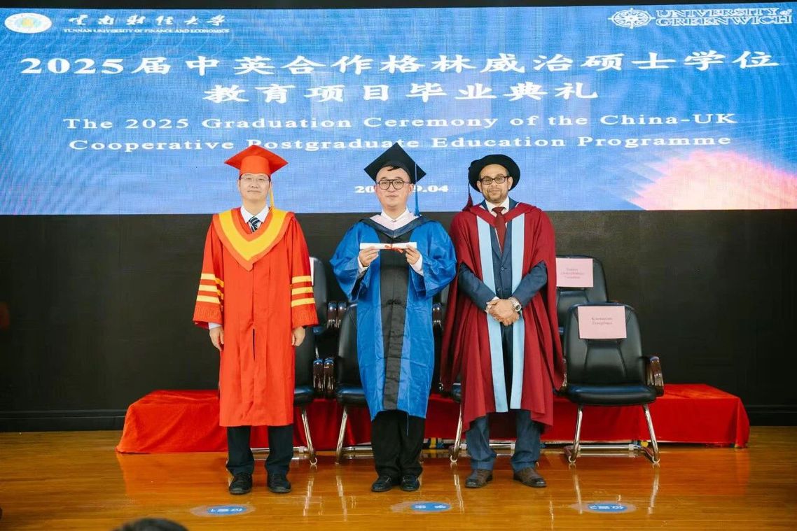 读研期间,张冉豪同学继续发扬“天天向上”的南洋精神,以严谨的态度和专业的科研水平撰写硕士论文,最终顺利通过答辩。功夫不负有心人,今年9月,张冉豪以2025届中英合作格林威治硕士优秀毕业生的身份站在舞台上,全程用英文发表演讲,讲述自己的成长之路,为他的攀登历程镌刻下辉煌的印记。