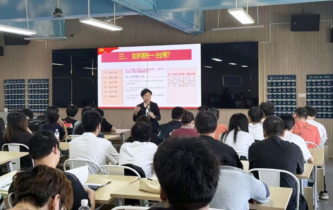 关于“如何统一台湾”,她表示,统一台湾要以“法理为基、舆论为势、融合为桥、经济为脉、军事为盾”的系统组合拳,塑造祖国必然统一大势,加快推进统一进程。她表示,历史的车轮滚滚向前,祖国统一大业势不可挡,勉励全体学子树立正确的历史观、民族观、国家观,抵制“台独”言论,主动参与两岸交流,为统一大业贡献青春力量。