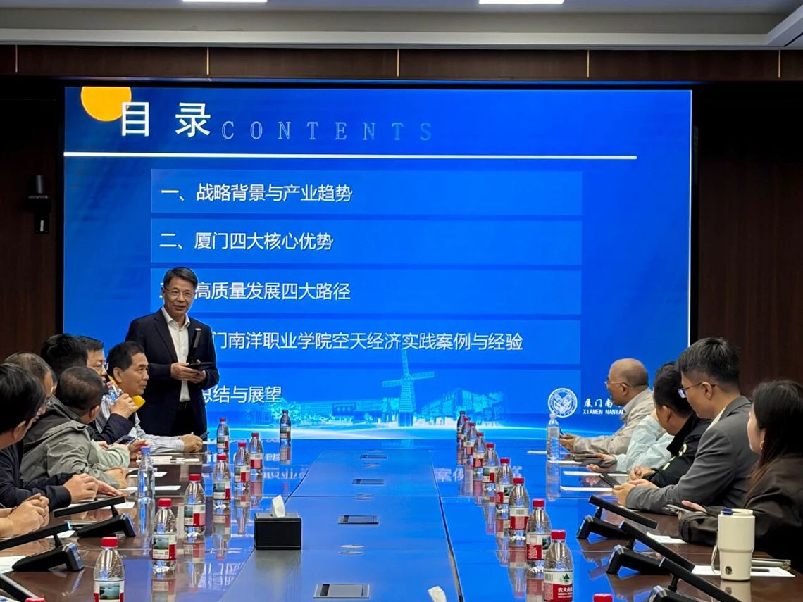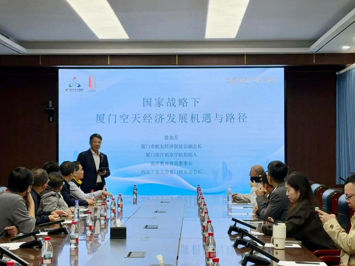 在企业考察第三组,我校创办人、南洋教育投资董事长、厦门市校友经济促进会副会长鲁加升教授受邀作《国家战略下的厦门空天经济发展机遇与路径》主题分享。本组活动由厦门市招商引资工作领导小组办公室、厦门校友经济联盟共同主办,厦门临空经济片区指挥部、厦门翔安国际机场建设指挥部协办,厦门市校友经济促进会承办。厦门市校友经济促进会副秘书长吴水霞主持活动。