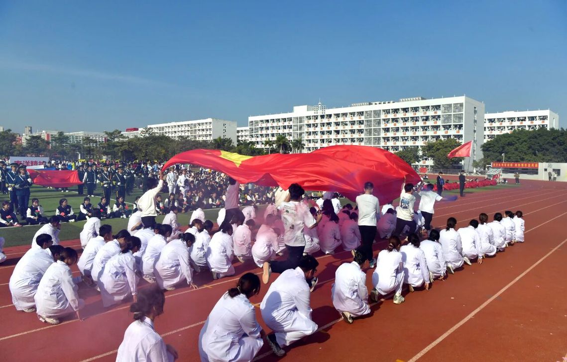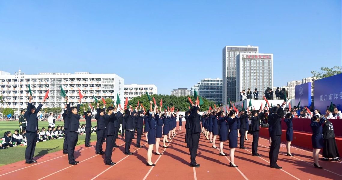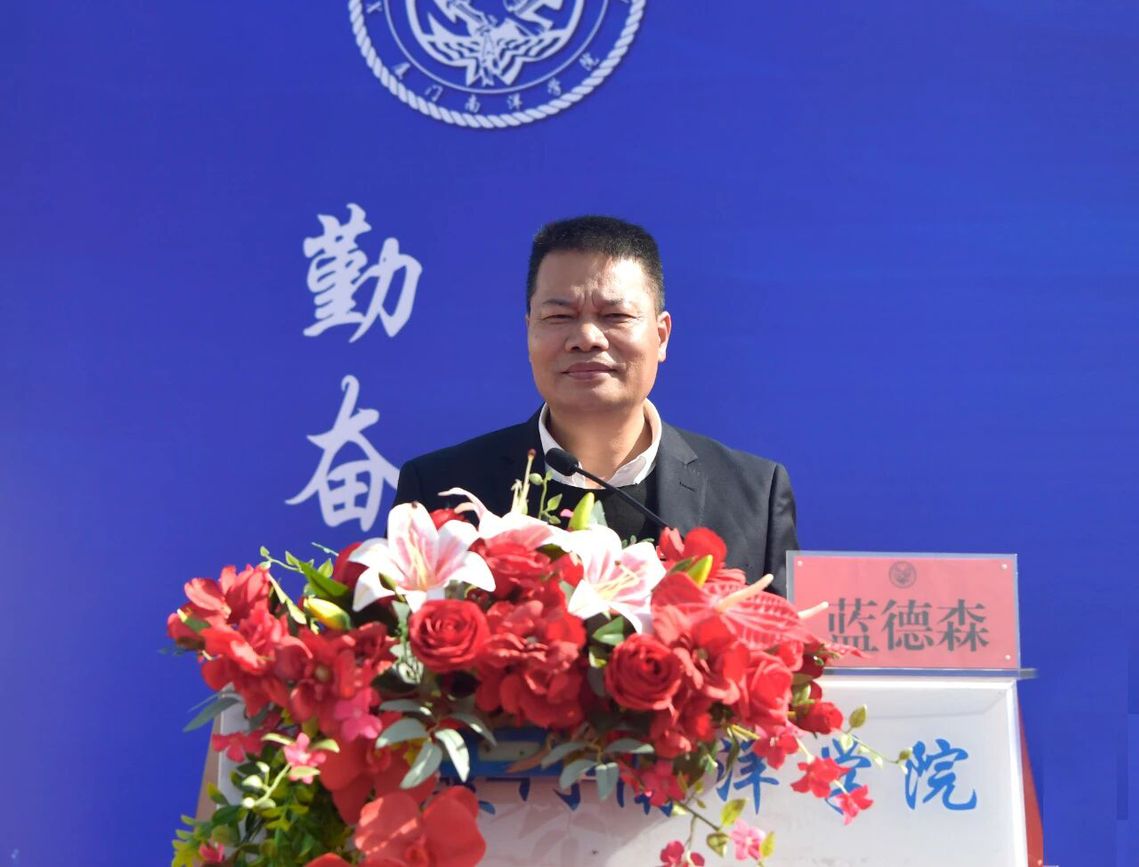 开幕式在庄严的国歌声中拉开序幕。校领导鲁晓芹、钟石根、许智坚、李振杰、蓝德森,原副校长何卫华,作家、厦门城市职业学院教授沈世豪,各职能处室负责人及师生代表出席开幕式。副校长蓝德森主持仪式。
