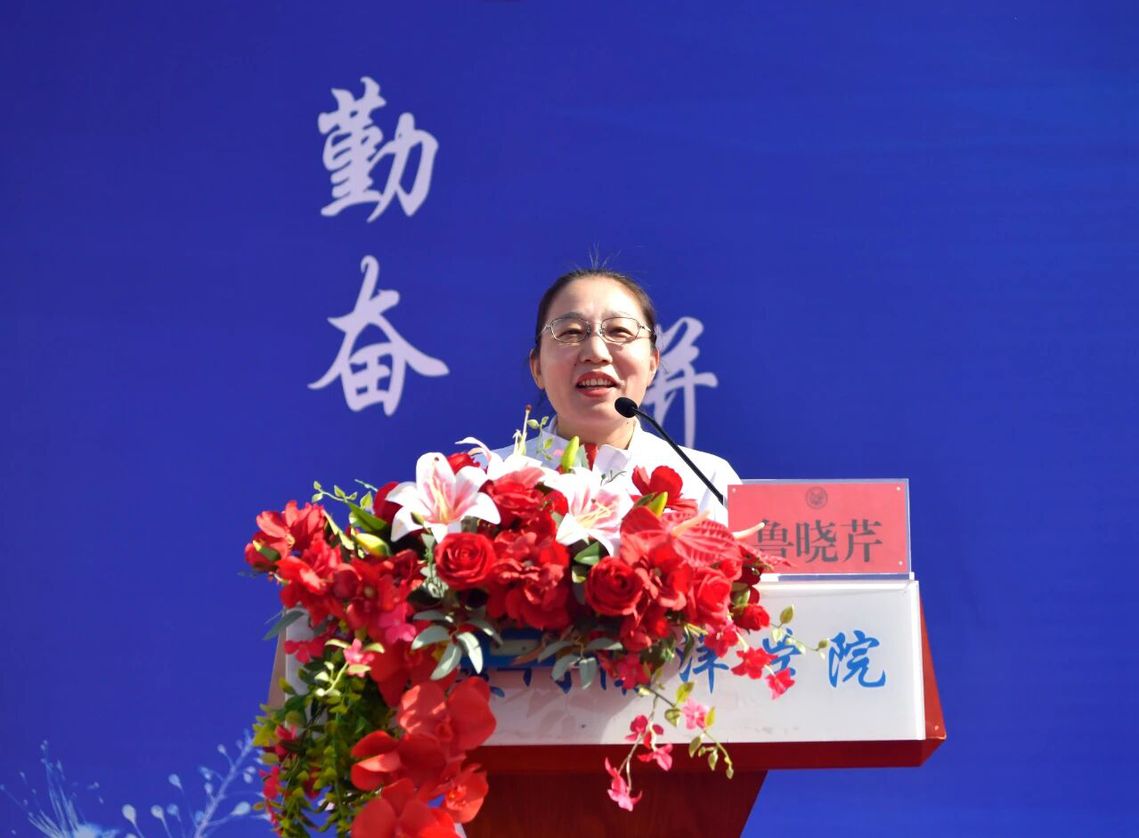 董事长鲁晓芹作开幕式致辞。她指出,我校认真贯彻落实习近平总书记关于加快建设教育强国、体育强国的重要论述,深化体育改革,推广阳光健康跑,构建活力校园体育文化,师生在多项赛事中屡创佳绩,展现了团结拼搏、追求卓越的体育精神。她表示,田径运动会既是对体育工作的检阅,更是精神的传承。希望师生们在赛场上锤炼品格、凝聚力量,共同奏响超越自我、激荡人心的运动乐章。
