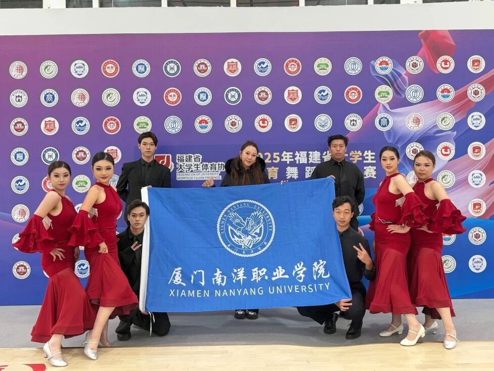 近日,由福建省大学生体育协会主办的2025年福建省大学生体育舞蹈锦标赛在武夷山市举行。我校体育舞蹈队斩获大学乙组维也纳华尔兹项目一等奖,2025级刘玲艳同学获精英赛单人三项L决赛第二名,2025级鄢然同学获单人四项L决赛第一名。
