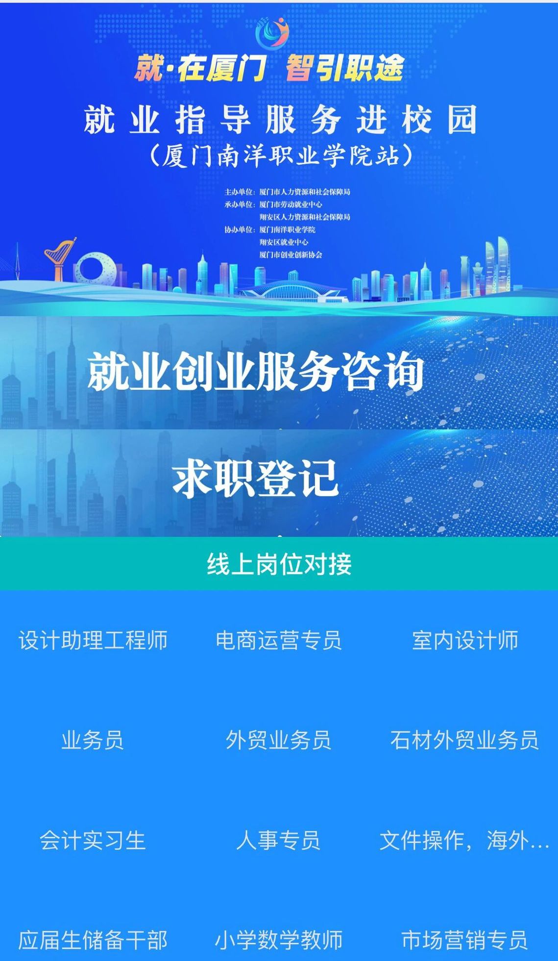 为落实国家和省市促进高校毕业生就业的决策部署,提升毕业生就业意愿与求职能力,搭建政校企协同的就业服务平台,12月3日,“就・在厦门,智引职途”公共就业服务进校园活动在我校仙岳报告厅举办,“厦门南洋职业学院就业创业服务站”正式成立。