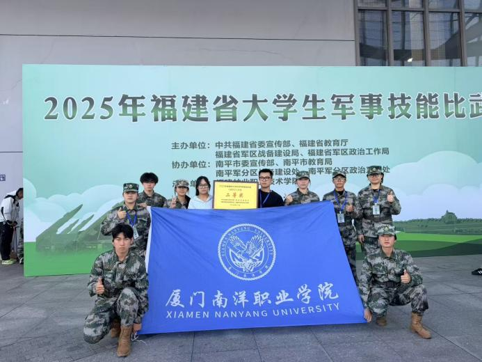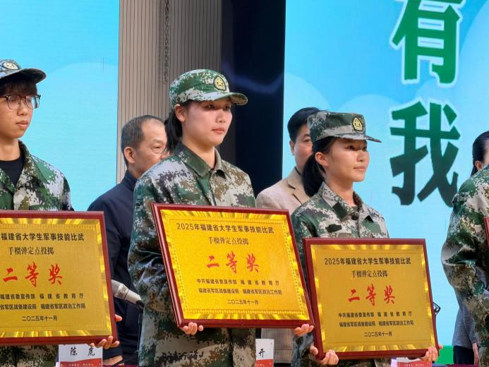 近日,2025年福建省大学生军事技能比武在福建林业职业技术学院举行,我校代表队荣获手榴弹定点投掷项目二等奖。