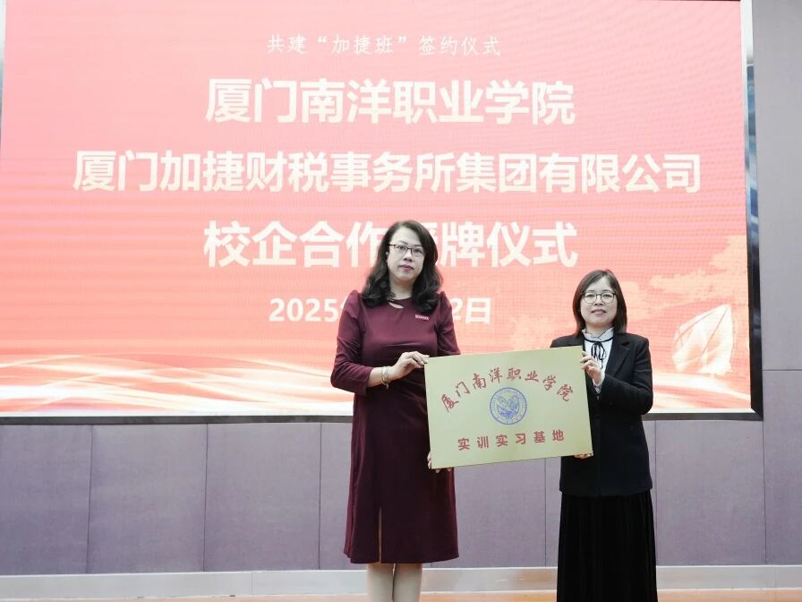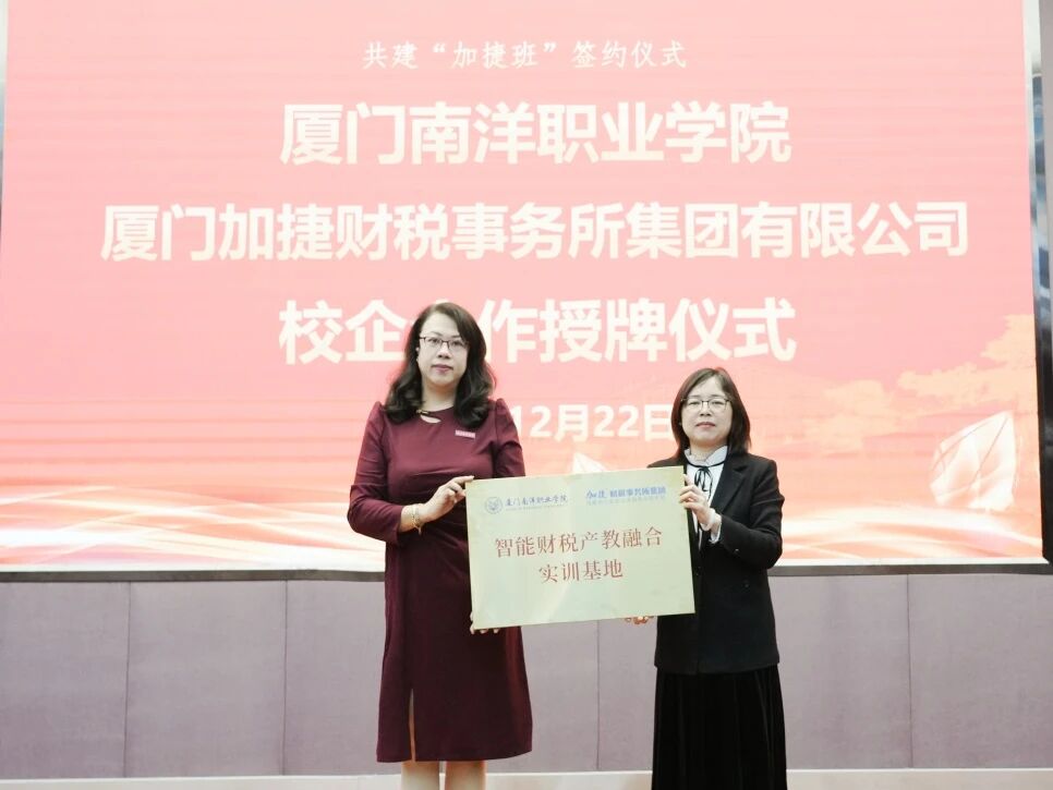 加捷班,是我校与厦门加捷财税事务所集团有限公司共建实现“产学研用”的新模式,旨在精准对接企业需求,深化校企合作内涵,拓展“三元制”人才培养途径,通过共同制定人才培养方案、共建课程体系、共享优质资源等方式,为会计行业培养更多高素质、高技能的应用型人才。