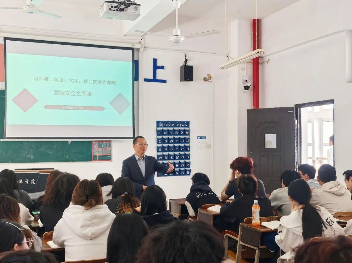 11月21日下午,党委副书记、执行校长钟石根以《国家安全之军事》为题,为W23动漫设计1、2班的学生带来了一堂国家安全教育课。