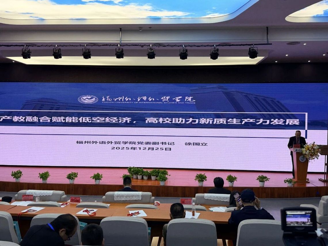 福州外语外贸学院党委副书记、工会主席徐国立以《产教融合赋能低空经济,高校助力新质生产力发展》为题作报告。