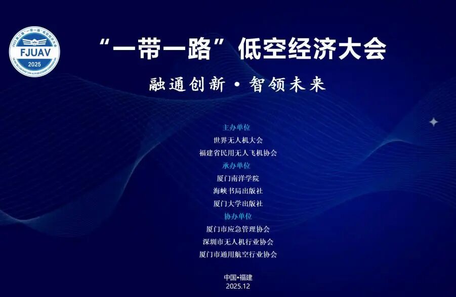 12月25日,第二届“一带一路”低空经济大会在厦门南洋职业学院仙岳报告厅隆重召开。本次大会在福建省工信厅指导下,由世界无人机大会、福建省民用无人机协会联合主办,厦门南洋职业学院、厦门大学出版社共同承办,厦门市应急管理协会、深圳市无人机行业协会、厦门市通用航空行业协会协办。大会以“融通创新·智领未来”为主题,来自政府机构、院士专家、领军企业、科研院校及行业协会等多领域代表齐聚一堂,旨在搭建一个跨国界、跨领域的协同交流平台,推动沿线国家在复合型人才培育、关键技术攻关、产业生态共建等方面深化协作,助力破解空域管理、基础设施建设、商业化路径等共性难题,为构建空中“一带一路”新经济走廊注入强劲动力。